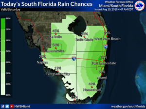 South Florida will be steamy with showers and storms Saturday. The day features a mix of sun and clouds to start, with periods of showers and some storms, especially in the afternoon. Highs on Saturday will be in the low 90s, but it will feel more like the triple digits.