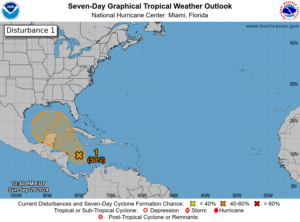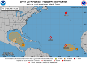 But we continue to watch the western Caribbean, where an area of low pressure is forming. The National Hurricane Center currently gives this feature a medium chance of developing. But it will end up in the Gulf of Mexico in a few days, where conditions remain highly favorable for tropical development. It’s too early to tell where this feature will go — but everyone on the Gulf Coast needs to pay attention to its future track.