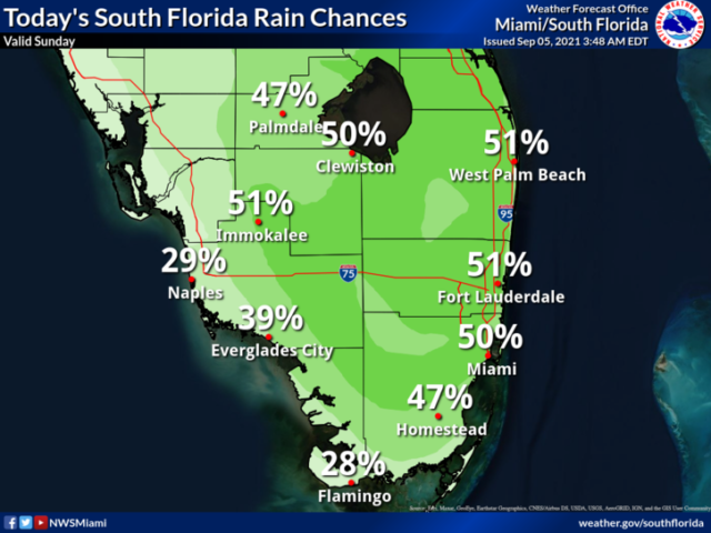 Sunday features lots of sun in the morning, with periods of showers and storms in the afternoon.  Look for the bulk of the activity to be in the east coast metro area.  Highs on Sunday will be in the sticky low 90s, except for some readings in the upper 80s right along the Gulf coast.
