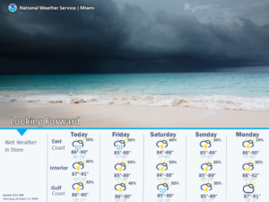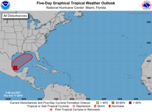 In the tropics, we’re watching the low now centered in the Bay of Campeche, a feature which already has tropical storm force winds but not yet a closed center of circulation. This low is likely to become a tropical storm later on Thursday, and computer models indicate it will affect portions of the northern Gulf coast — including the Florida panhandle and Big Bend area this weekend. Heavy rain and very gusty winds are expected there, regardless of development.