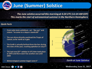 sun, cloudsSouth Florida will see sun, clouds, and showers on Wednesday, while Tropical Storm Cindy lashes the Florida panhandle. Here at home, Wednesday features a mix of sun and clouds, passing showers on the breeze in spots, and a few afternoon storms. A moderate risk of dangerous rip currents is in place at the Atlantic beaches. Highs on Wednesday will be near 90 degrees as summer officially begins.