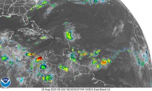 It’s really busy now in the tropics. We’ll start with the named systems, where there’s good news. Tropical Storm Josephine is losing steam north of the Leeward Islands. At 5 am on Sunday, Josephine was located near 20.3 North, 64.0 West, and was moving west-northwest at 15 miles per hour. Maximum sustained winds were 40 miles per hour, and Josephine is forecast to weaken more as it moves through an area of strong wind shear. Well to the north, Kyle has become extratropical in the open Atlantic. At 5 am Sunday, Kyle was about 545 miles southwest of Cape Race, Newfoundland. Maximum sustained winds were 40 miles per hour, and what’s left of Kyle will accelerate to the east before dissipating.