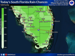 Sunday features plenty of sun in the morning and developing clouds, showers, and storms in the afternoon. Highs on Sunday will be in the low 90s right at the coasts and the mid-90s elsewhere — but it will feel even hotter, so stay out of the sun and stay hydrated.
