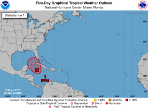 In the tropics, we continue to watch the low that’s near the Cayman Islands.  It has a high chance of becoming a depression this weekend.  Computer runs indicate this feature will be in the southwestern Gulf of Mexico by early next week.  Whether it develops or not, it will bring additional rainfall to South Florida this weekend and into Monday.