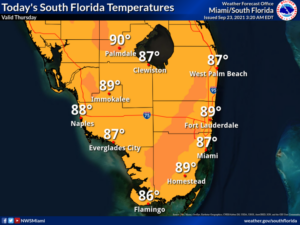 Thursday features mostly sunny skies in the morning, followed by showers and storms during the mid to late afternoon, especially in the east coast metro area. Highs on Thursday will be mostly in the upper 80s.