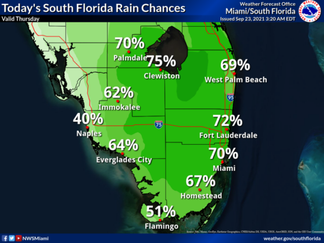 Saturday will see sun alternating with showers and a few storms along the Gulf coast, while the east coast metro area will see mostly sunny skies in the morning and showers and storms in the mid to late afternoon. Saturday’s highs will be in the upper 80s.