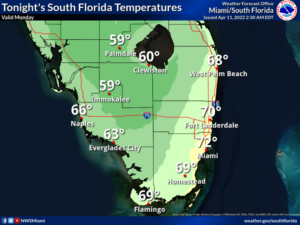 Tuesday will be quite breezy, with sunny skies along the Gulf coast and a nice mix of sun and clouds — with maybe a quick shower in spots — in the east coast metro area. Tuesday’s highs will be mostly in the low 80s in the east coast metro area and in the upper 80s along the Gulf coast.