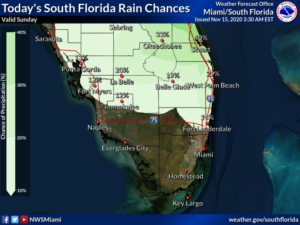 Sunday features lots of sun and just the chance of a stray shower on a gentle ocean breeze. Minor flooding at high tide is possible along the Atlantic coast through Monday evening. Highs on Sunday will be in the mid-80s.