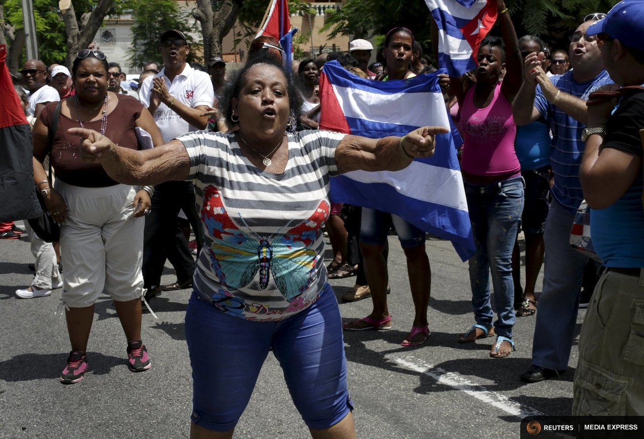 Supporters of the Cuban government shout slogans against the “Ladies in White”, an opposition group in Havana