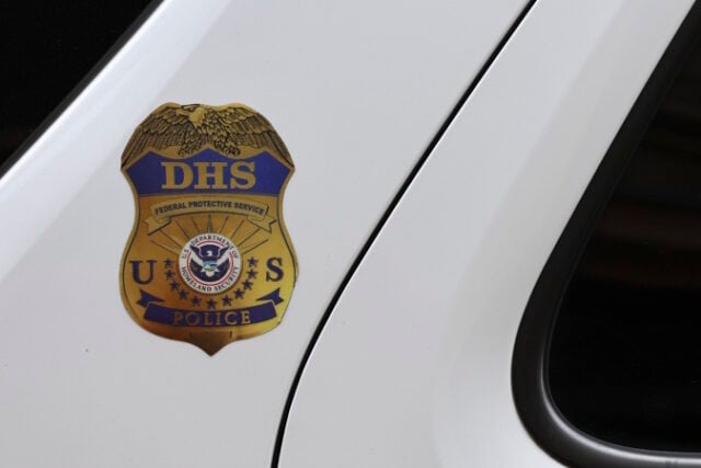 A Federal Protective Service police vehicle parked on the street, Monday, April 28, 2025, in Chicago. (Aaron M. Sprecher via AP)