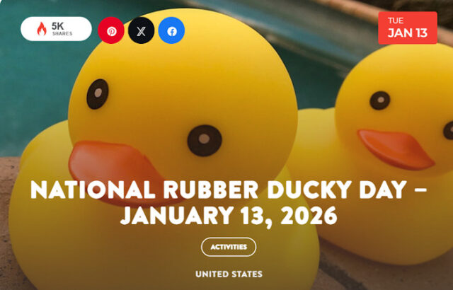 According to a 1973 Sesame Street calendar, Rubber Duckie’s Birthday is January 13th so around the country it’s National Rubber Ducky Day! A friend of Ernie and Big Bird, Duckie made his debut in a February 1970 episode.
