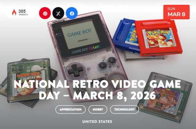 National Retro Video Game Day is celebrated on March 8. It is a day for retro gamers to reminisce and bring out those retro games played in the earlier days of gaming before the arrival of Xbox and PlayStation, Wii, and other modern gaming.