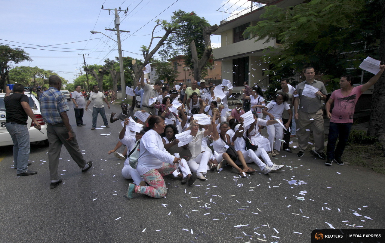 Members of The Ladies in White, an opposition group are detained from Cuban security personnel after their weekly anti-government protest march, in Havana