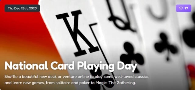 National Card Playing Day on December 28th encourages us to invite our friends to deal out a hand and play a game or two.