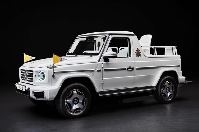 It’s the first electric popemobile from the luxury German automaker, which has been manufacturing vehicles for the Vatican for the last 90 years. For half that time, the popemobile has been based on Mercedes’ G-Class wagon. And now, for the first time, it wil be operating without any pollution, powered by the company’s EV technology.