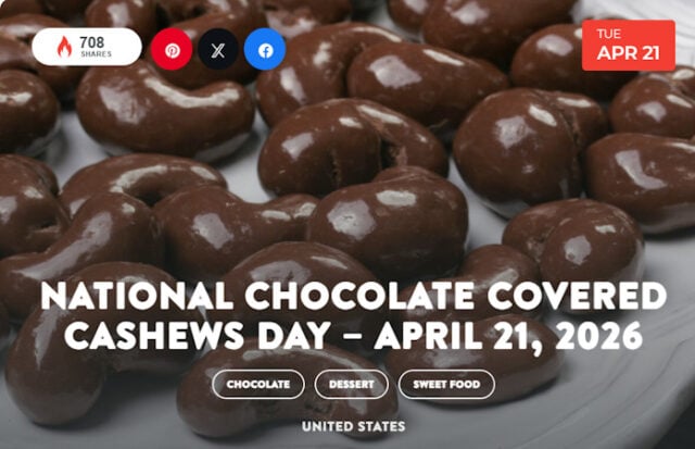 • 2000s – National Chocolate Covered Cashews Day is created in honor of these tasty treats.