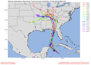 At 5 pm Monday, Potential TC # 9 was about 315 miles southeast of the western tip of Cuba.  Maximum sustained winds were 35 miles per hour, and the system (which at that time did not have a closed circulation) was moving north-northwest at 7 miles per hour.