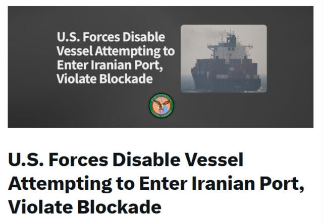 “The Iranian crew refused to listen, so our Navy ship stopped them right in their tracks by blowing a hole in the engineroom,” Trump wrote on Sunday afternoon. “Right now, U.S. Marines have custody of the vessel… seeing what’s on board!”