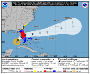 Milton was moving north-northeast at 17 miles per hour at 1 pm. A turn to the northeast is forecast before landfall late Wednesday night or very early Thursday morning.