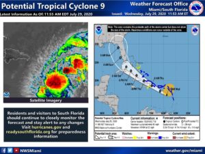 Here in South Florida, we need to prepare for tropical storm conditions, including gusty winds and heavy downpours from Saturday evening through Sunday morning. Power outages are possible. It’s time to top off your hurricane supplies. Plan on securing any outdoor items or take them indoors by Friday night or early on Saturday, because conditions will deteriorate on Saturday afternoon. We’ll also watch very carefully over the next day or so regarding the need to put up shutters, but at midday on Wednesday, that will probably not be necessary.