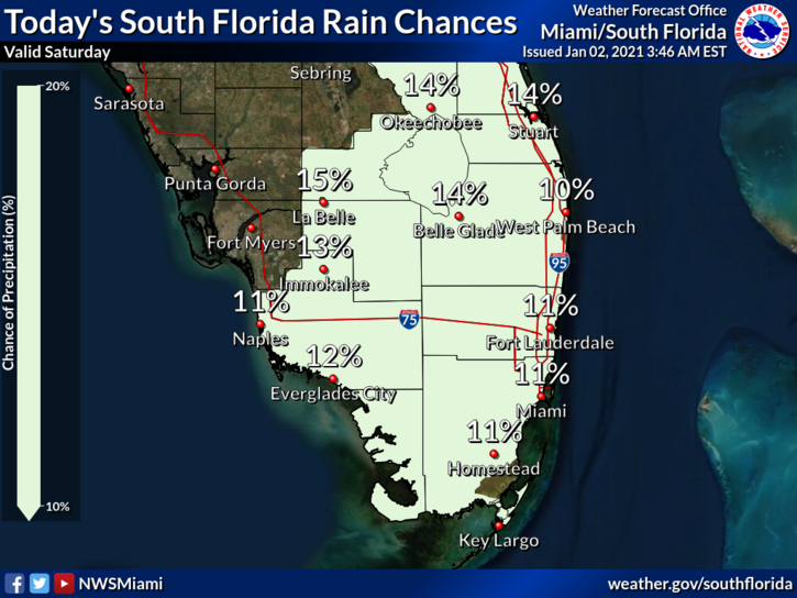 Saturday starts with some patchy fog.  Then the day features a brisk and warm breeze.  Look for lots of sun along the Gulf coast and a mix of sun and clouds (along with a stray shower in spots) in the east coast metro area.  A high risk of dangerous rip currents remains at the Atlantic beaches until Saturday evening.  Highs on Saturday will be in the low 80s.