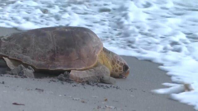 JUNO BEACH, Fla. (AP) — A crowd cheered and took photos as two loggerhead sea turtles slowly made their way through the sand and into the Atlantic Ocean on Monday after rehabbing at a Florida marine life center.