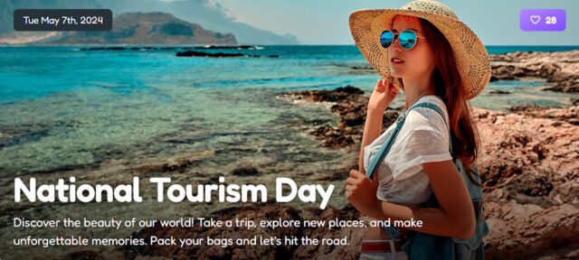 National Tourism Day takes place on May 7. This day is observed during National Travel and Tourism Week in the United States, which occurs every first full week of May. National Travel and Tourism Week was first celebrated in May 1983, as President Ronald Reagan signed a Proclamation urging all citizens to observe the week.