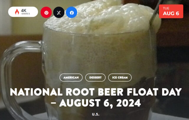 On August 6, National Root Beer Float Day tells us to float a scoop of vanilla ice cream in an ice-cold mug of frothy root beer. The classic beverage creates a creamy treat loved by generations!